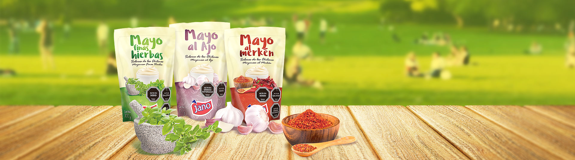 Sabores de los Chilenos Ajo, Merkén, Hierbas. Mayonesas Sabor Casero. El mismo Sabor, distinto color. 38 años de Sabor Casero Agrosilva Aderezos Mayonesas, Ketchup, Mostaza y mucho más con nuestro reconocido Sabor Casero Ver Productos El Sabor de los Chilenos Jano Aderezos Acompaña tus platos favoritos con el tradicional sabor de Aderezos Jano. El Sabor de los Chilenos! Ver Productos Bienvenidos a probar El Sabor de los Chilenos! Los mejores Aderezos para acompañar todas tus comidas Mayonesas, Ketchup, Mostaza, Ají y mucho más! Un toque de nuestro sabor Ampliar Mayonesa Jano Doypack Más productos Ampliar Mayonesa Jano amarilla Más productos Ampliar Mayonesa Sabor Casero Más productos Ampliar Mayonesa al Ajo Más productos Ampliar Mayonesa Finas Hierbas Más productos Ampliar Salsa Queso Más productos Ampliar Ketchup Agrosilva Más productos Ampliar Ají Jano Más productos Ampliar Salsa BBQ Más productos